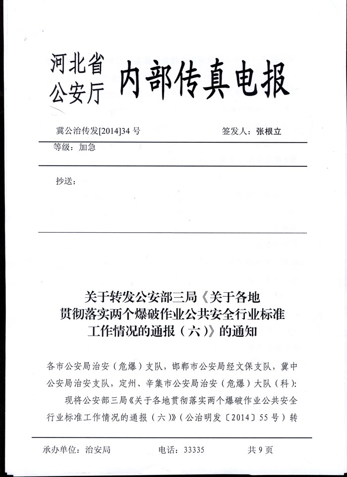 关于转发公安部三局《关于各地贯彻落实两个爆破作业公共安全行业标准工作情况的通报(六)》的通知