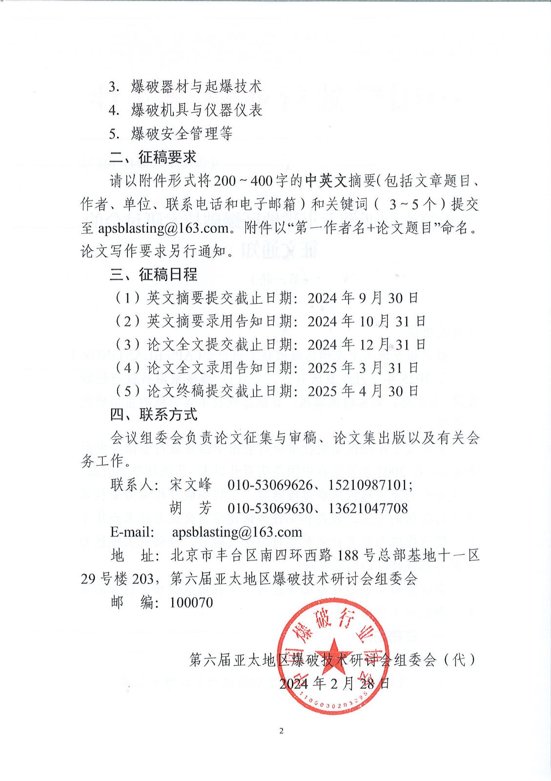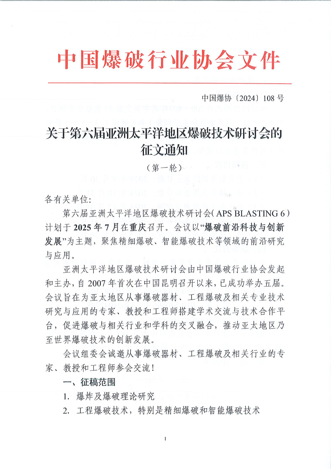 发布:关于第六届亚洲太平洋地区爆破技术研讨会的征文通知