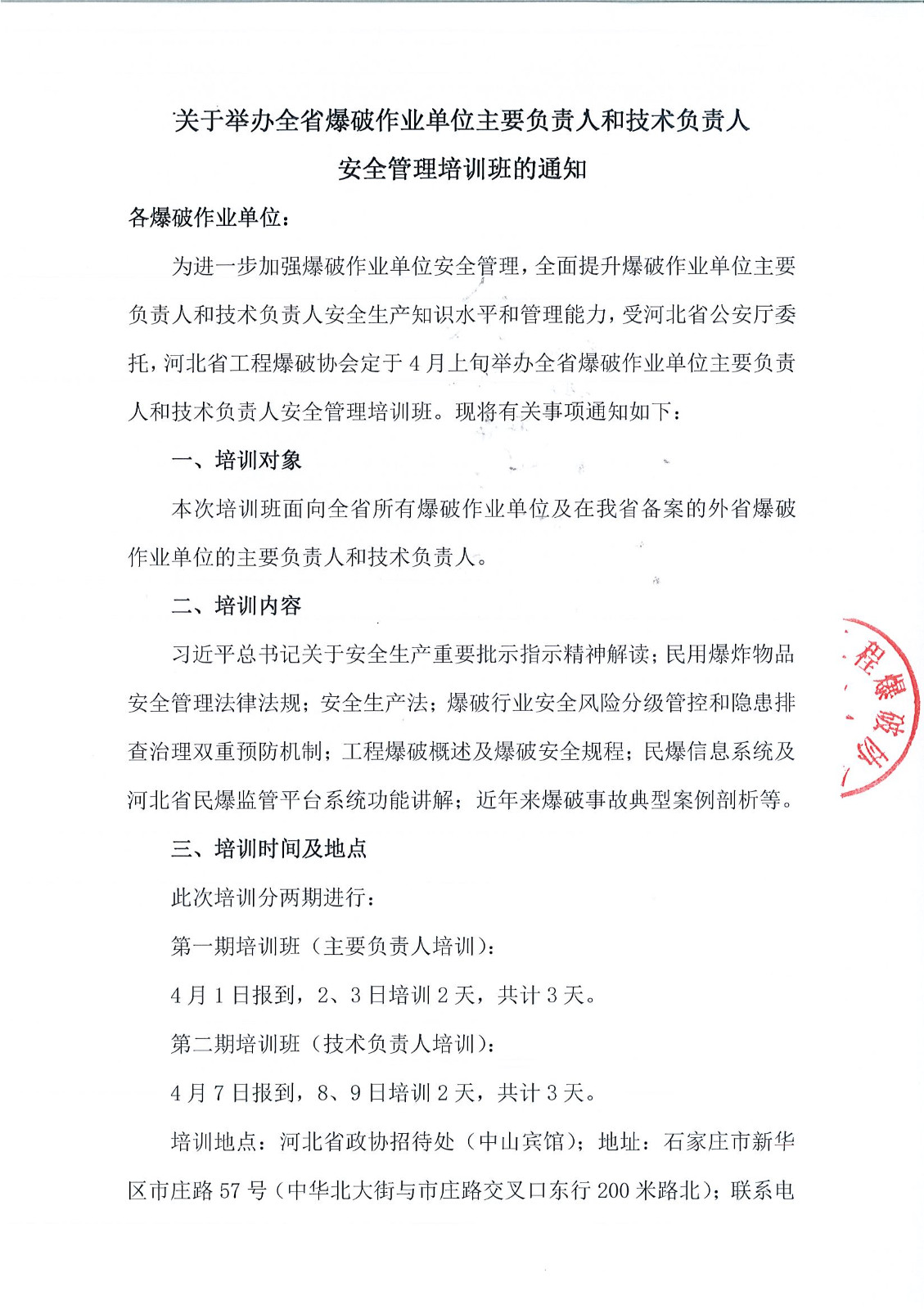 上一篇: 关于举办2023年度河北省工程爆破人员继续教育培训班(第四期)的通知