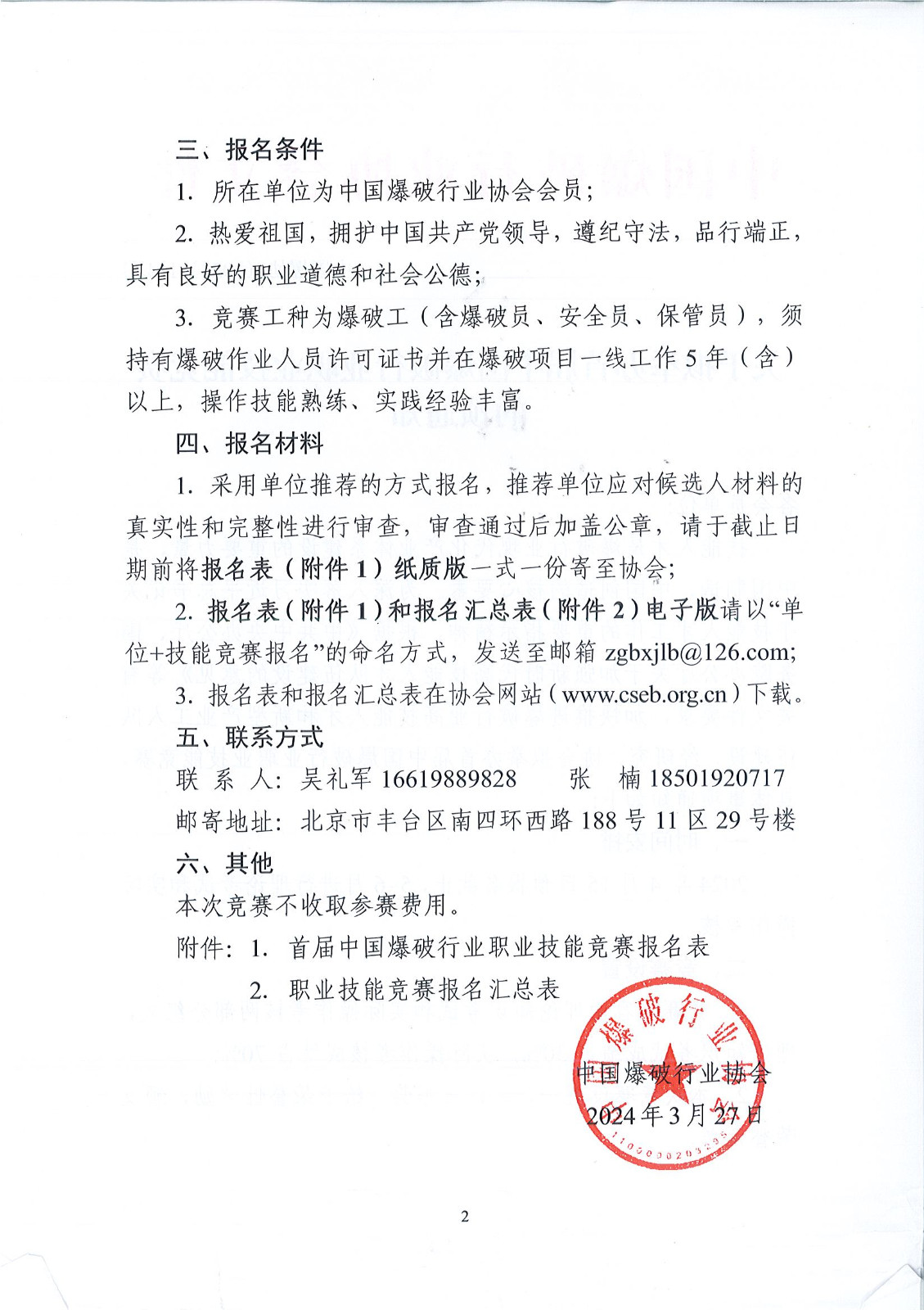 发布:关于拟举办首届中国爆破行业职业技能竞赛的预通知