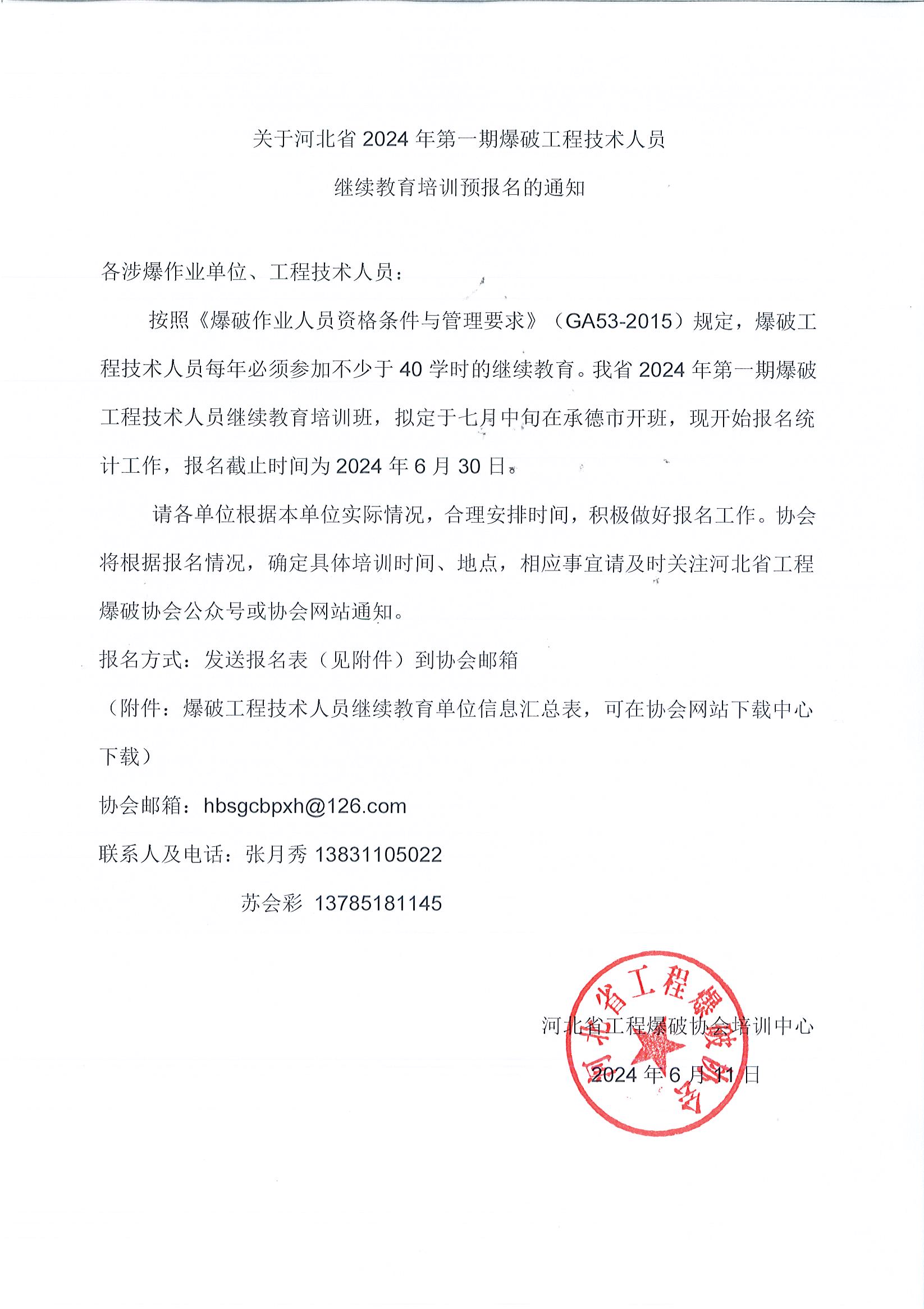 下一篇: 关于举办2024年度河北省爆破工程技术人员继续教育培训班(第一期)的通知