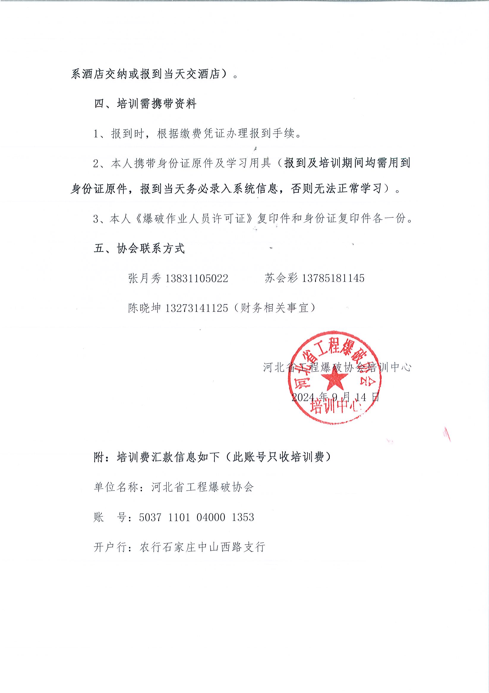 关于举办2024年度河北省爆破工程技术人员继续教育培训班(第二期)的通知