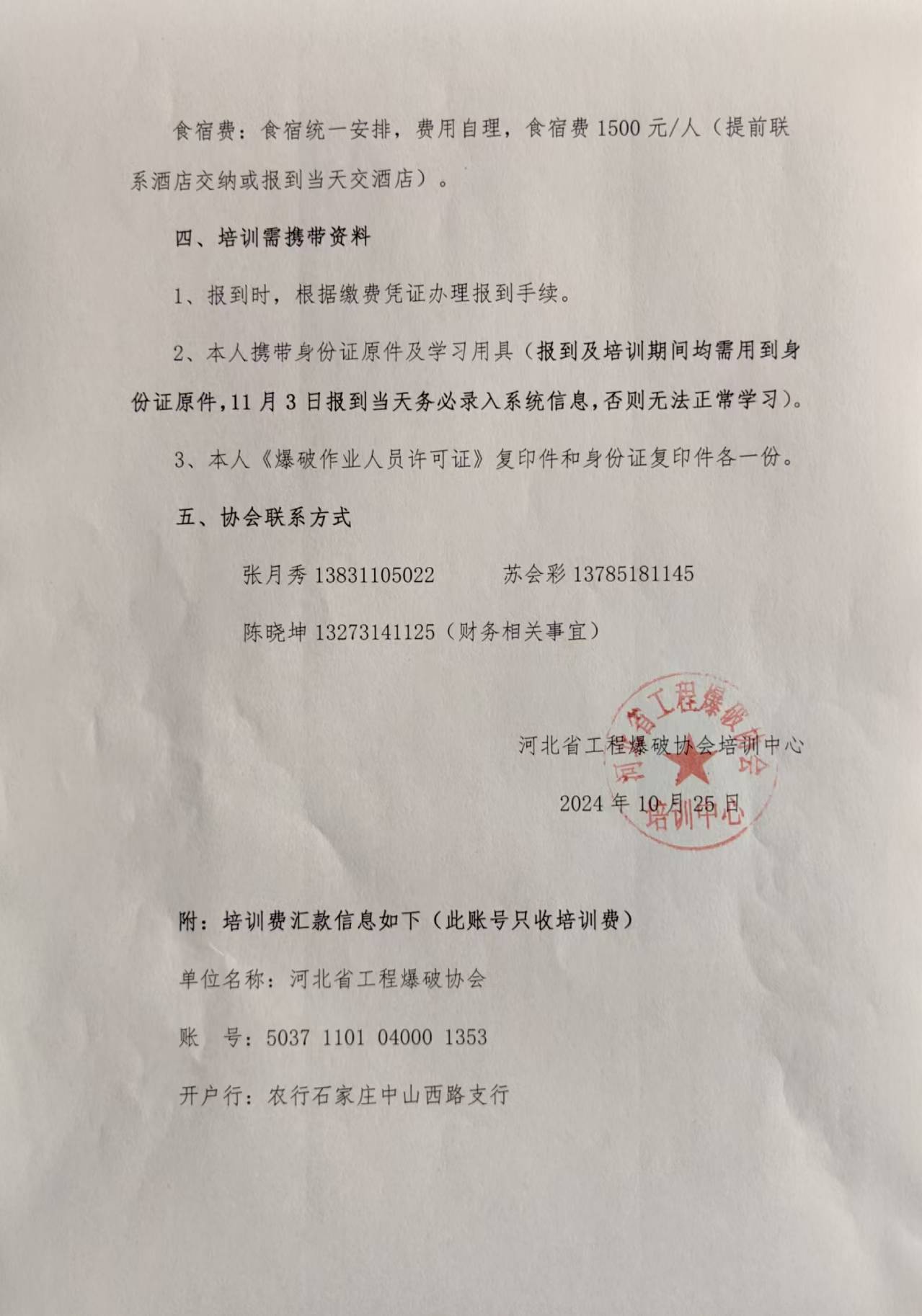 关于举办2024年度河北省爆破工程技术人员继续教育培训班(第三期)的通知