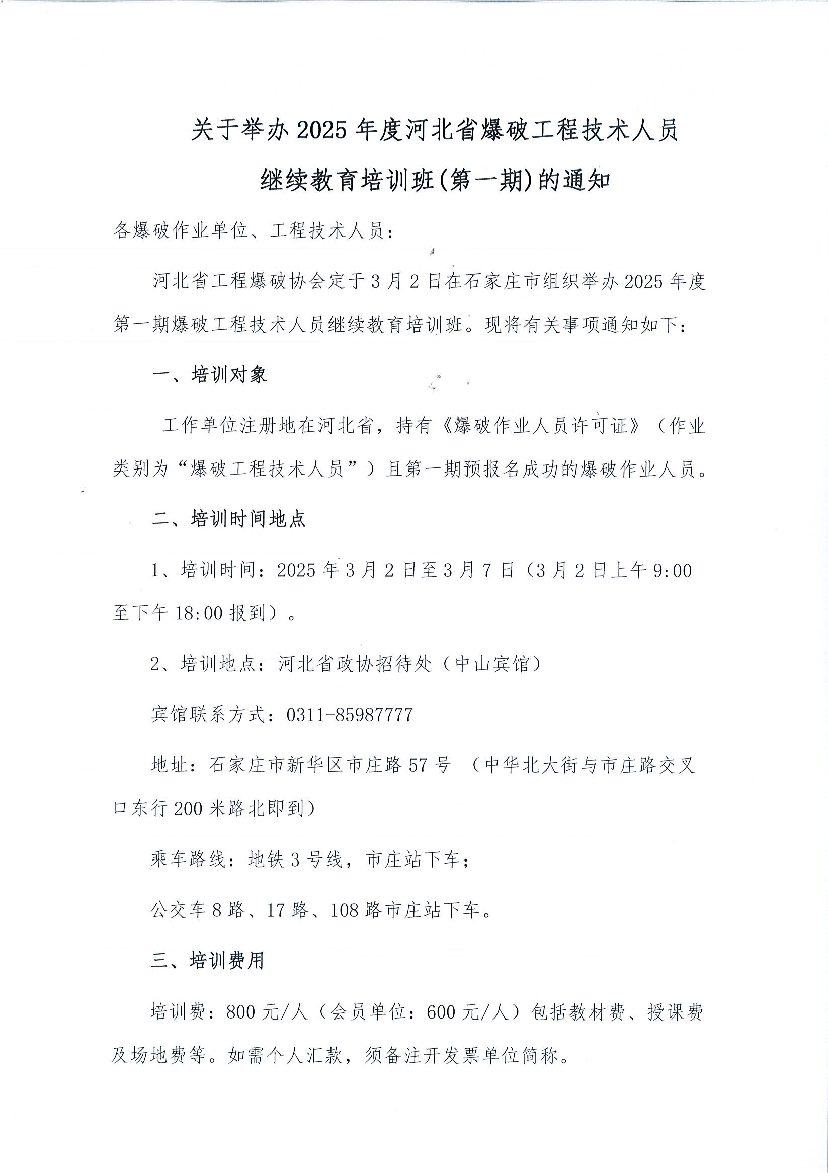 上一篇: 关于河北省2025年第一期爆破工程技术人员继续教育培训预报名的通知