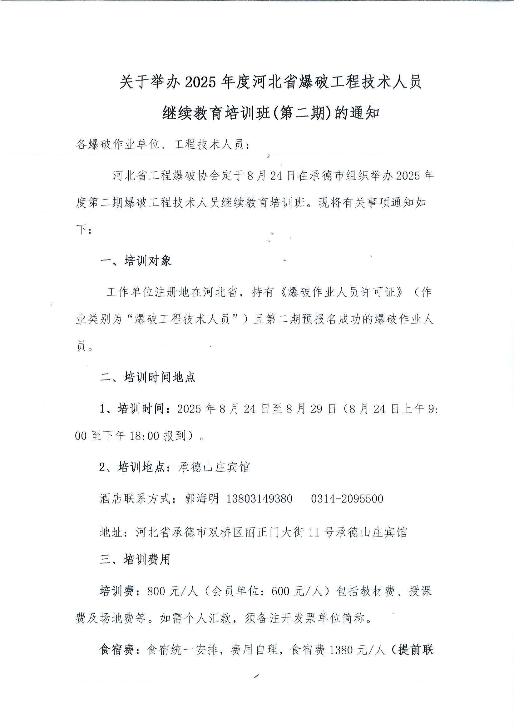上一篇: 关于河北省2025年第二期爆破工程技术人员继续教育培训预报名的通知